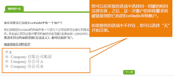 - 如果貴公司已經(jīng)參與過(guò)EcoVadis審核,您同樣需要完成注冊(cè)以確認(rèn)新客戶(hù)要求的審核范圍。
