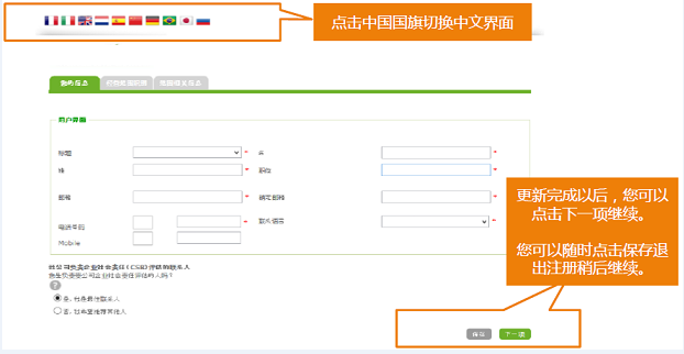 這一步驟用來(lái)確認(rèn)您是否是負(fù)責(zé)該項(xiàng)審核回答問(wèn)卷合適聯(lián)系人。可能公司內(nèi)部的另一位負(fù)責(zé)人更合適回答該項(xiàng)審核問(wèn)卷:您可以指定更新另一位負(fù)責(zé)人,他有可能是公司內(nèi)部的CSR專(zhuān)業(yè)人員,質(zhì)量安全總管,質(zhì)量經(jīng)理,公司總監(jiān)等。