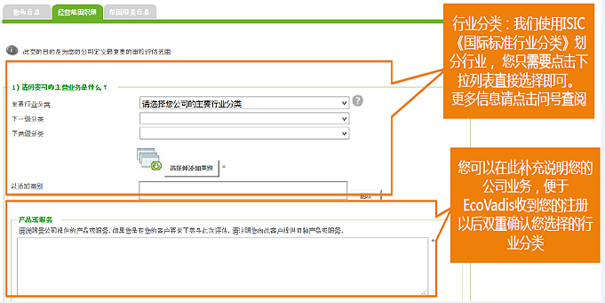 此頁(yè)的目的是為您的公司定義最重要的審核評(píng)估范圍及確認(rèn)行業(yè)分類(lèi),首先您需要填寫(xiě)客戶(hù)要求被審核單位的行業(yè)分類(lèi)