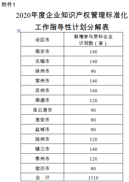 關(guān)于做好2020年度江蘇省企業(yè)知識產(chǎn)權(quán)管理標(biāo)準(zhǔn)化工作的通知
